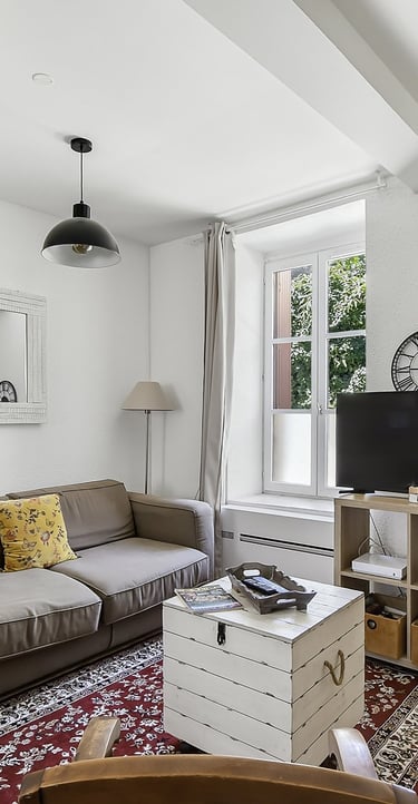 Bienvenue Chez Jean, un charmant appartement de plain-pied de 52m² avec 2 chambres, situé dans une rue calme et pleine de charme à Carcassonne.